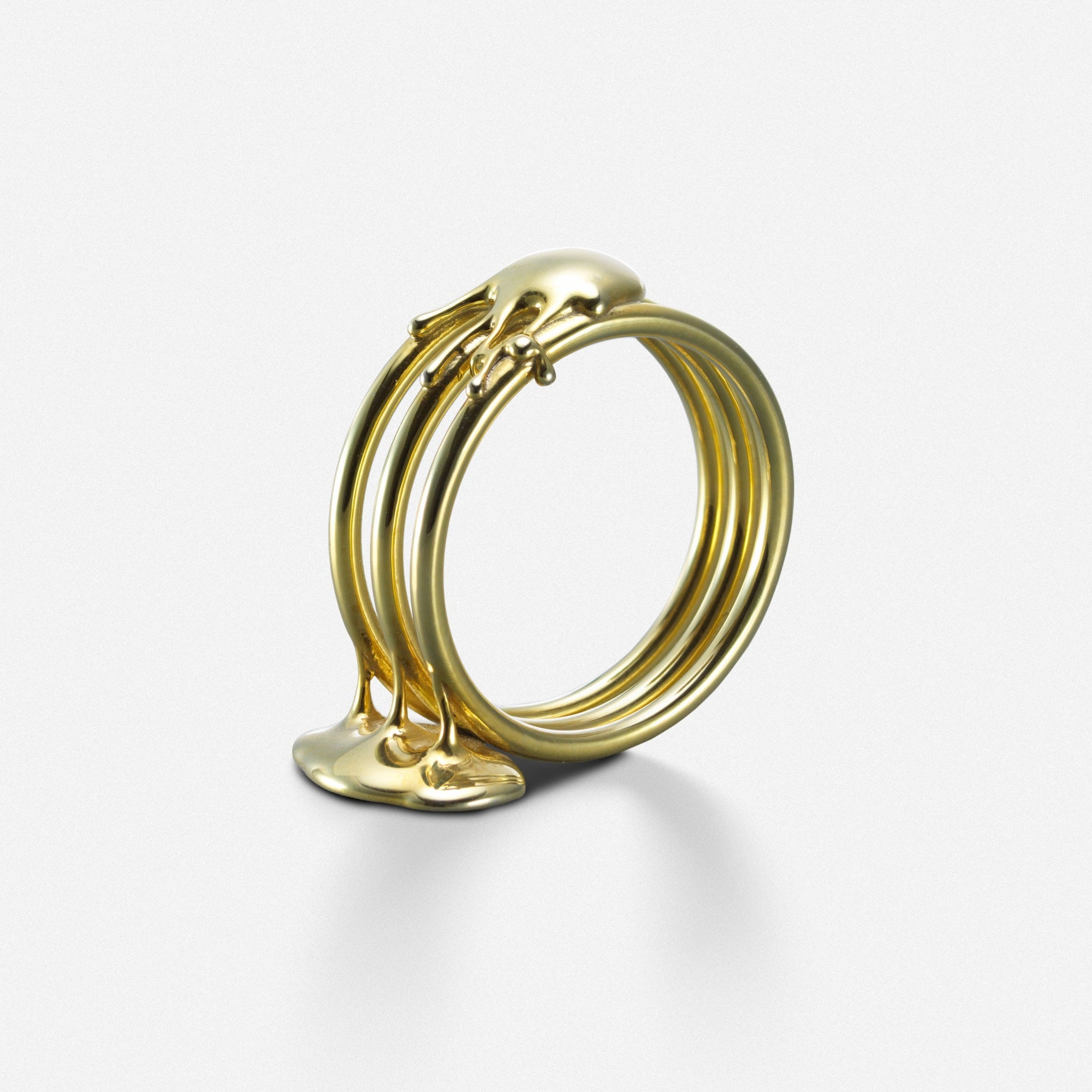 Meet Drippy—a ring that melts the rules. Defying the solid, still nature of metal, Drippy appears to be caught mid-pour, frozen in a moment of playful motion. With a pool of liquid metal at its feet, it stands all on its own, full of character and sass. Sculptural yet soft, Drippy blurs the line between solid and fluid, play and elegance. It’s not just worn—it moves with you, like a little droplet of mischief solidified in time. Metal has never looked so alive.