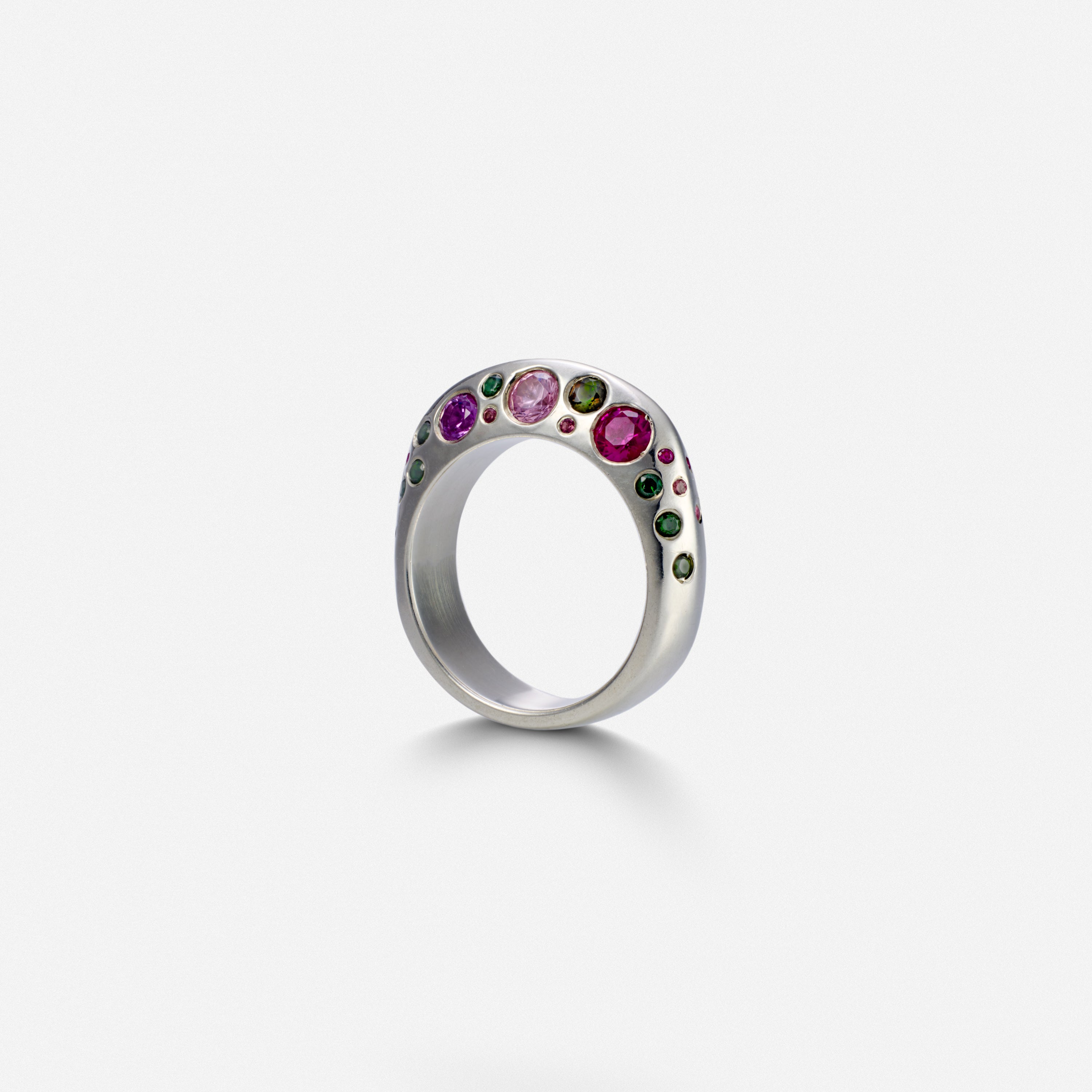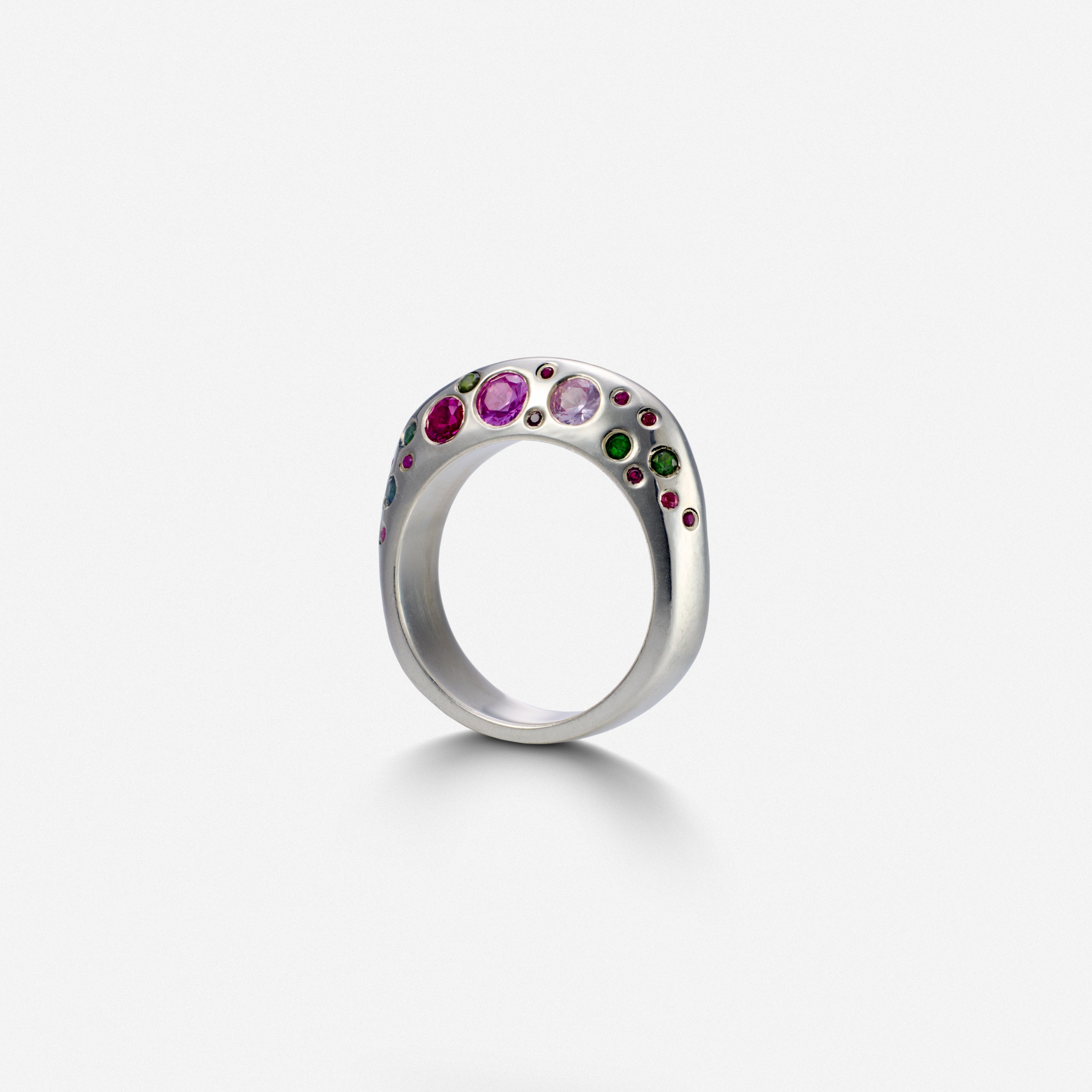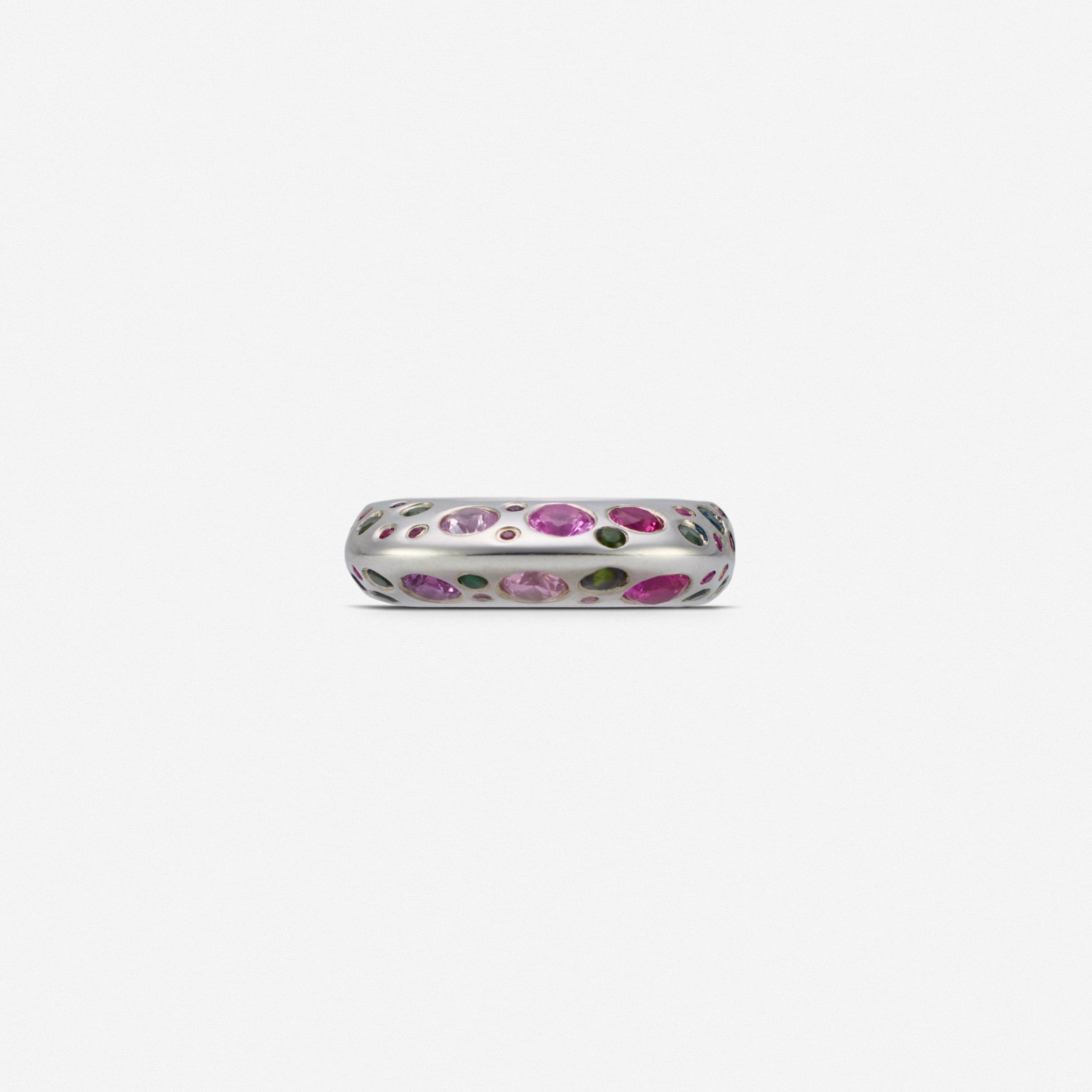 Solid Stoned Baby Boo covered with multicolor pink and green hand set sapphires