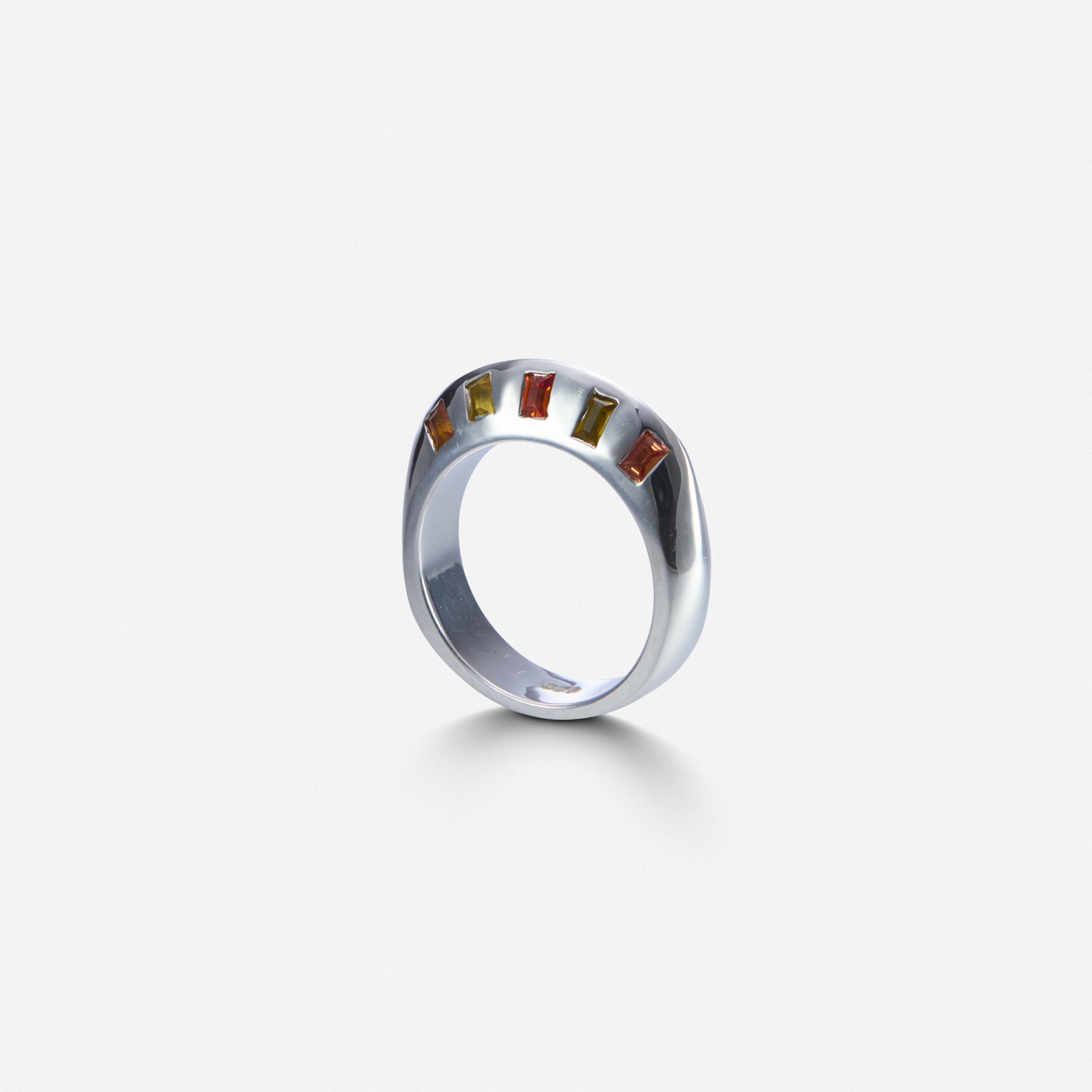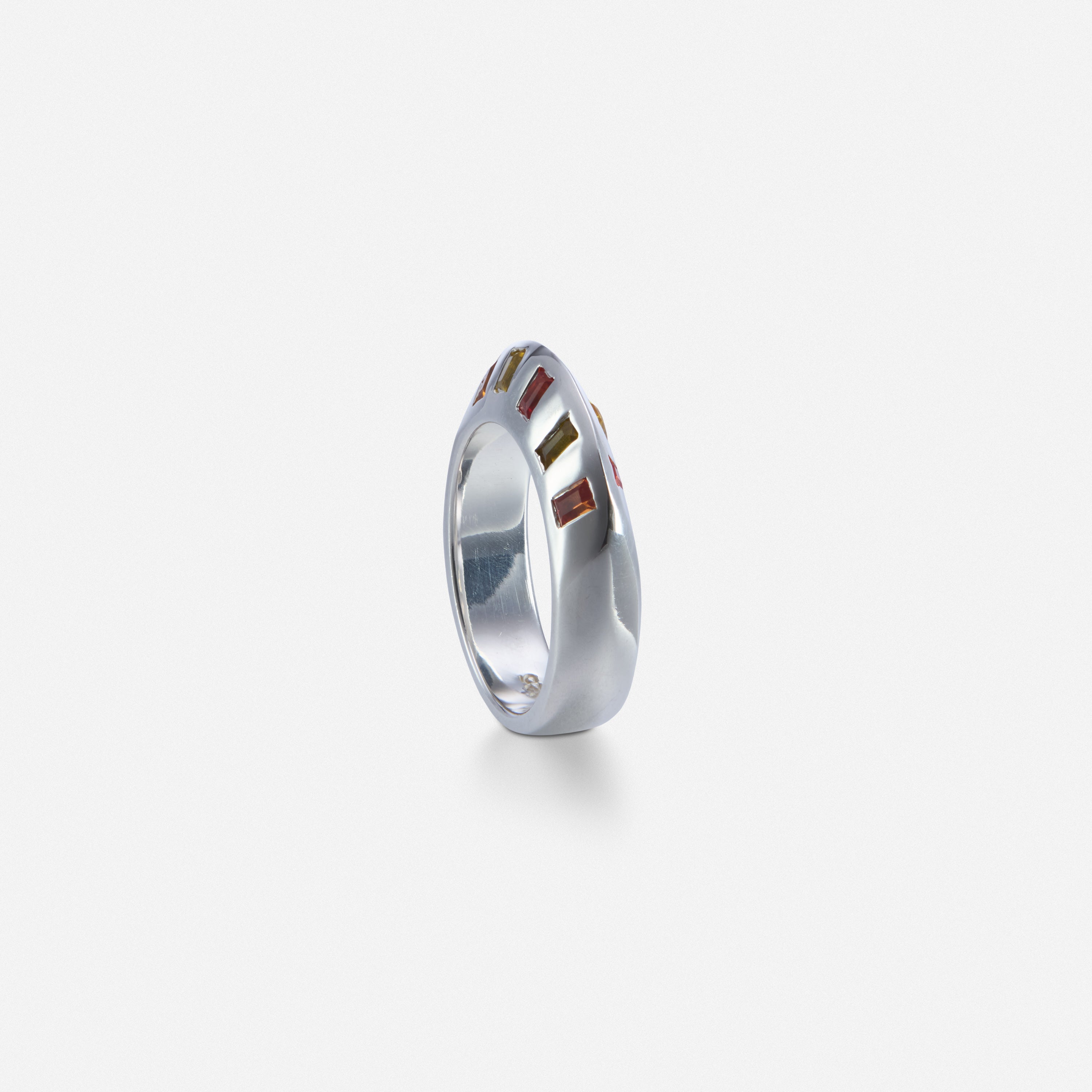 toned Baby Boo with nine rectangular multi-color sapphires handset on either side.