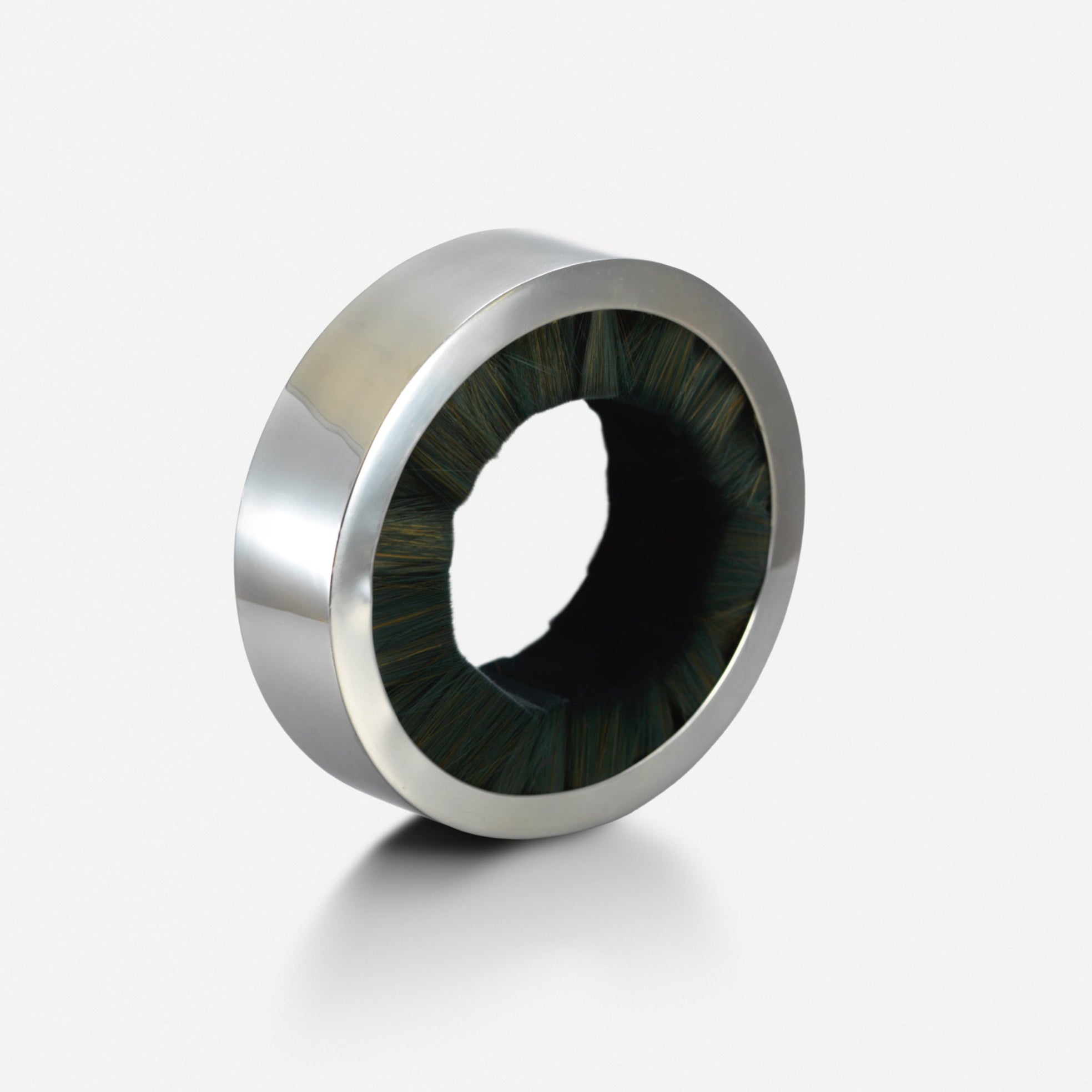 The Brushy Family is a collection of soft-spoken protectors—wearable pieces made from silver and real makeup brush bristles. Each one is crafted to wrap gently around the body, offering both structure and softness. They don’t shout for attention; they comfort, they soothe, they invite touch.