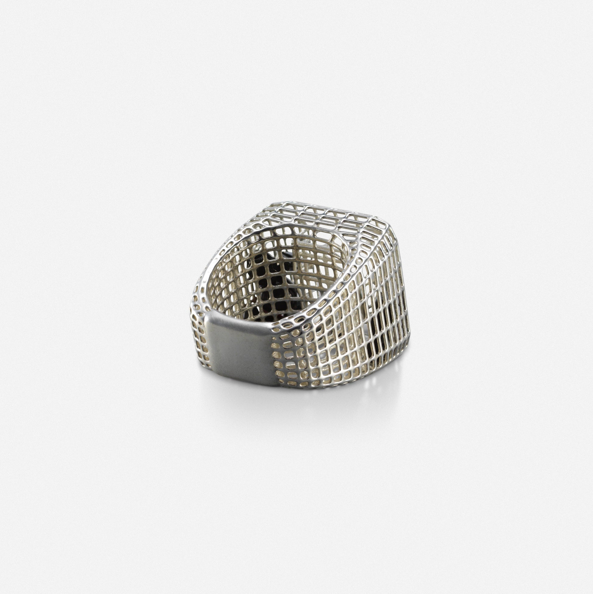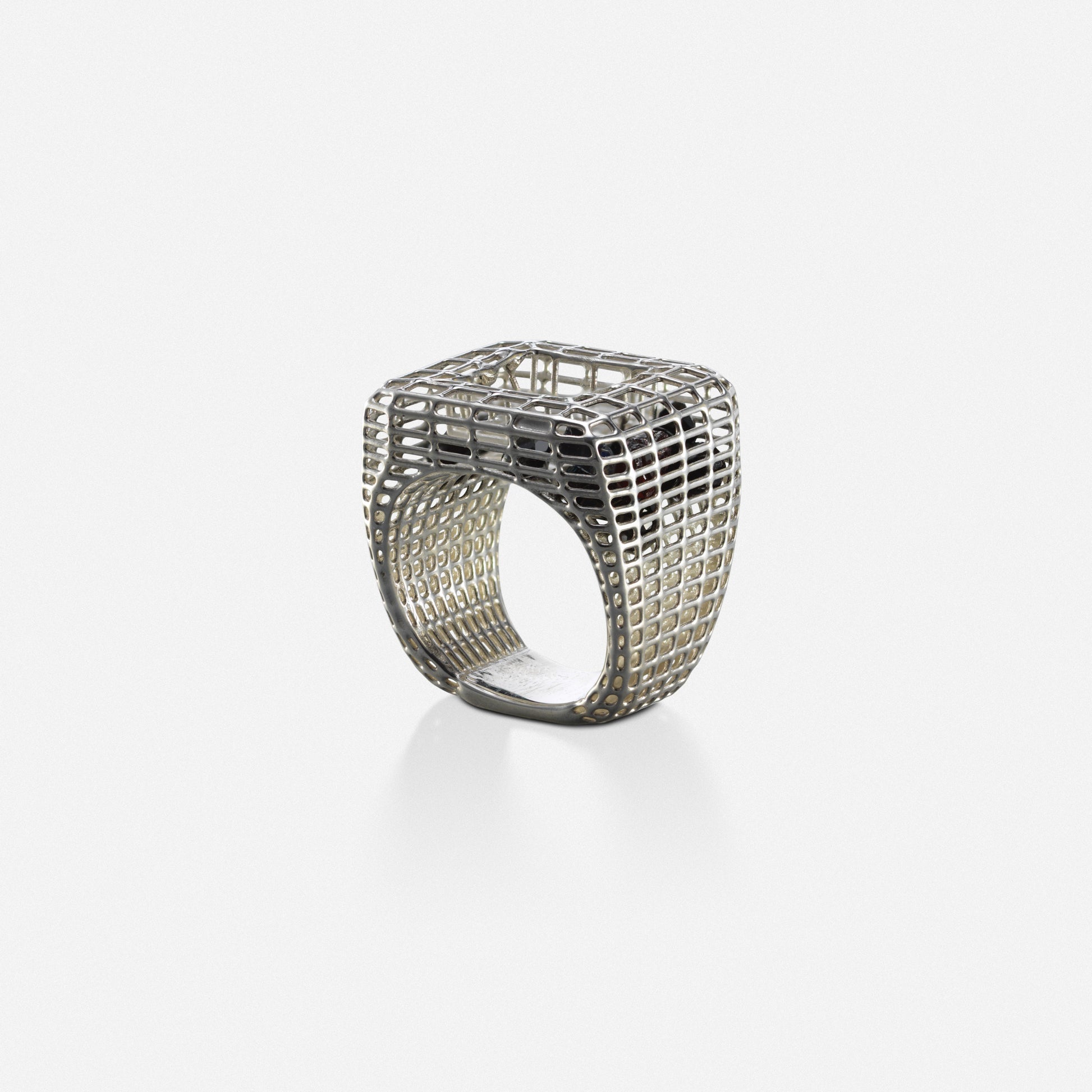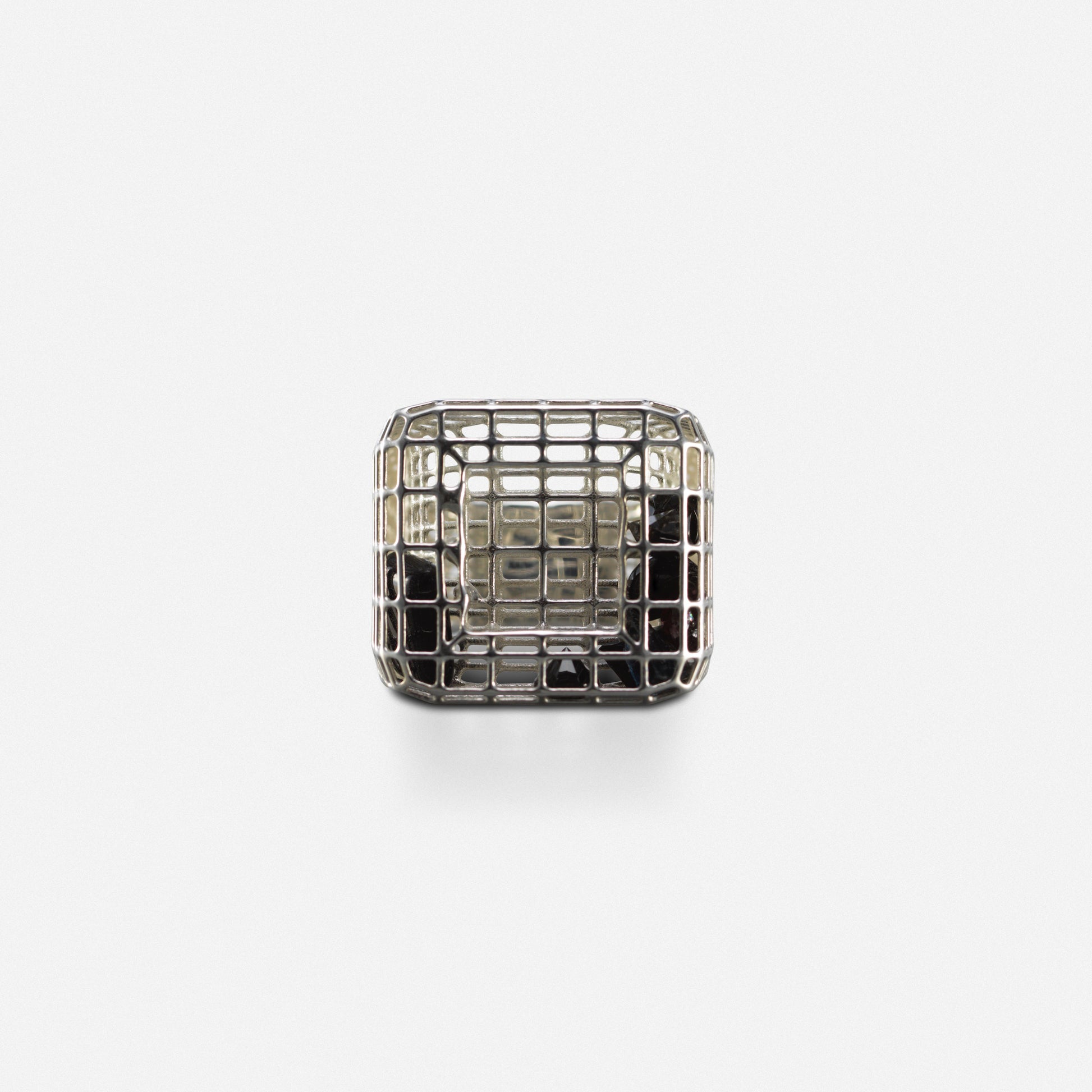 Silver cagey v1 set with multi color sapphires on the interior