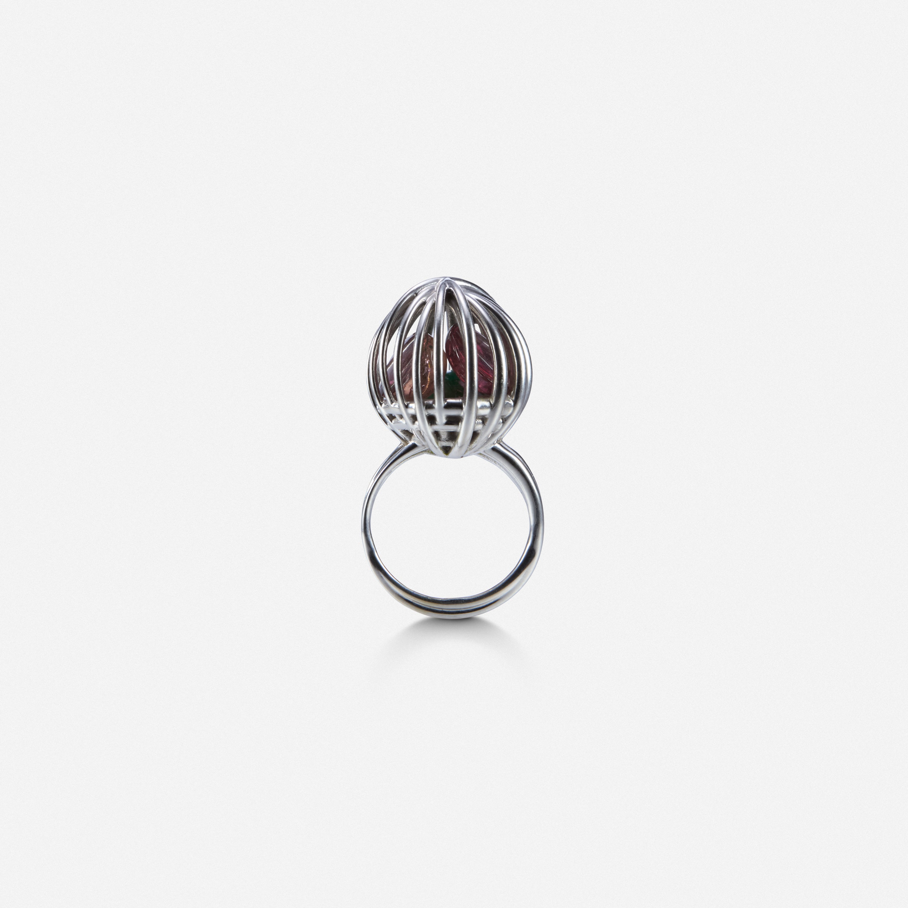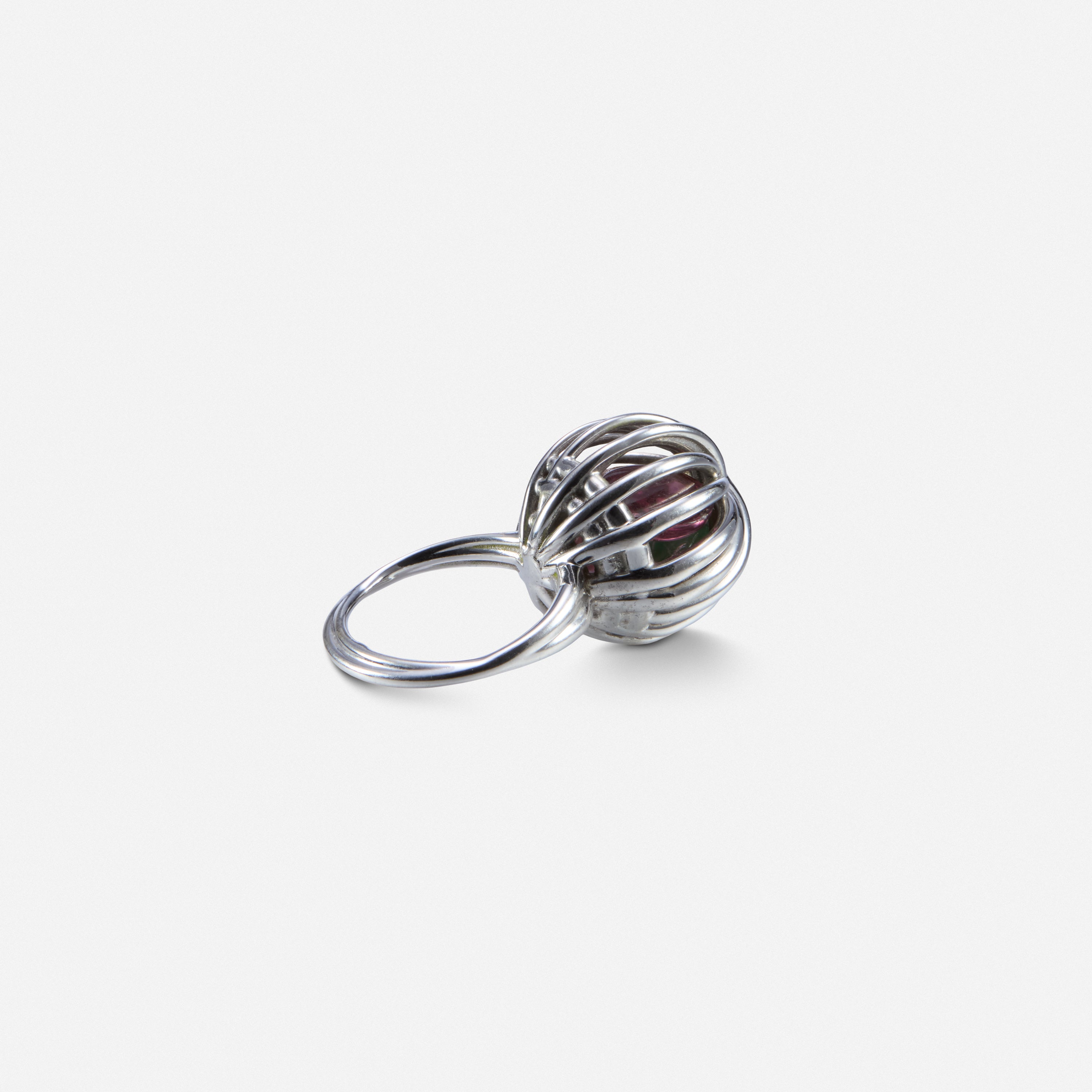 White Gold Rattled ring housing large Ruby, Emerald and Tourmalines… pinks and greens!