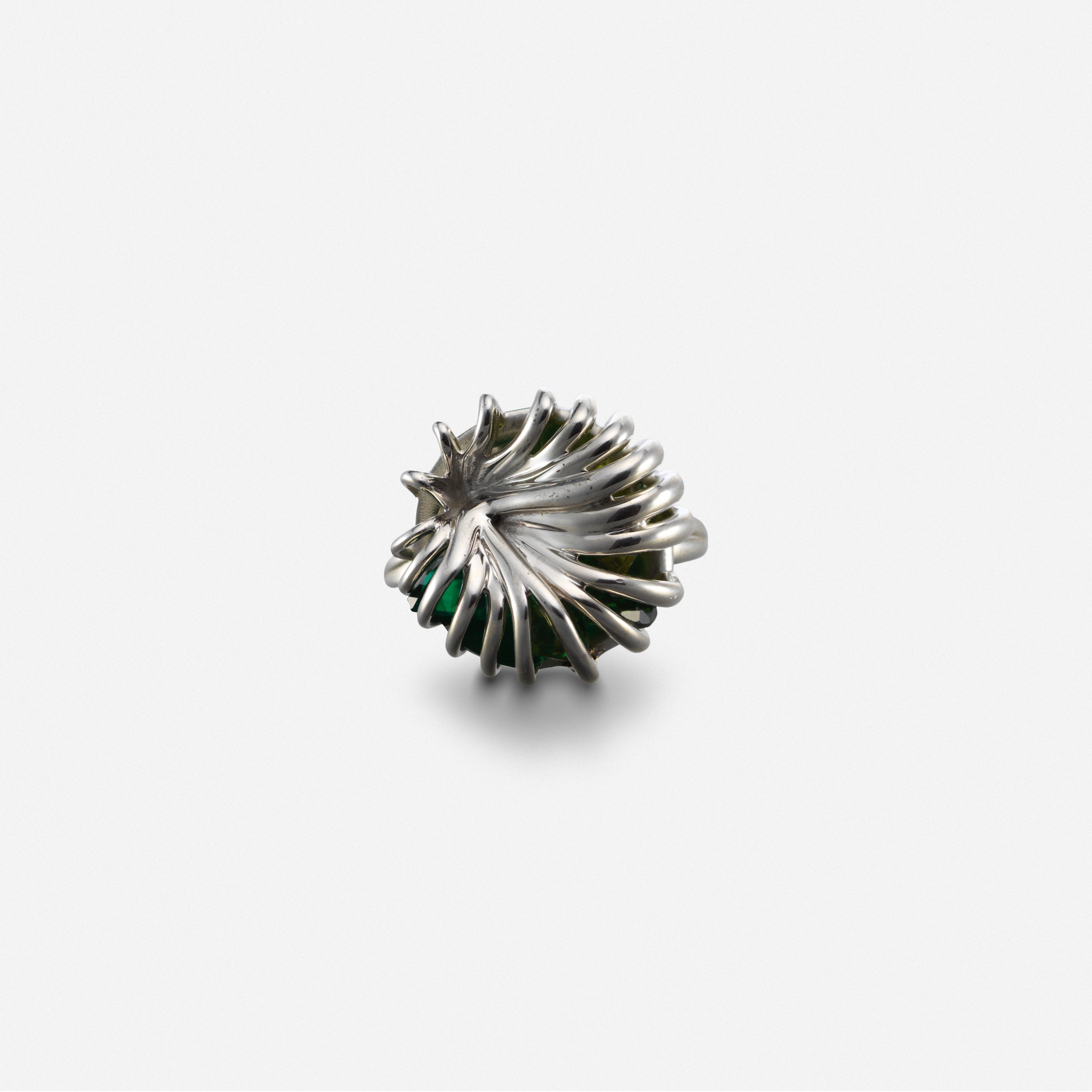 Melting silver rattled ring with green peridot