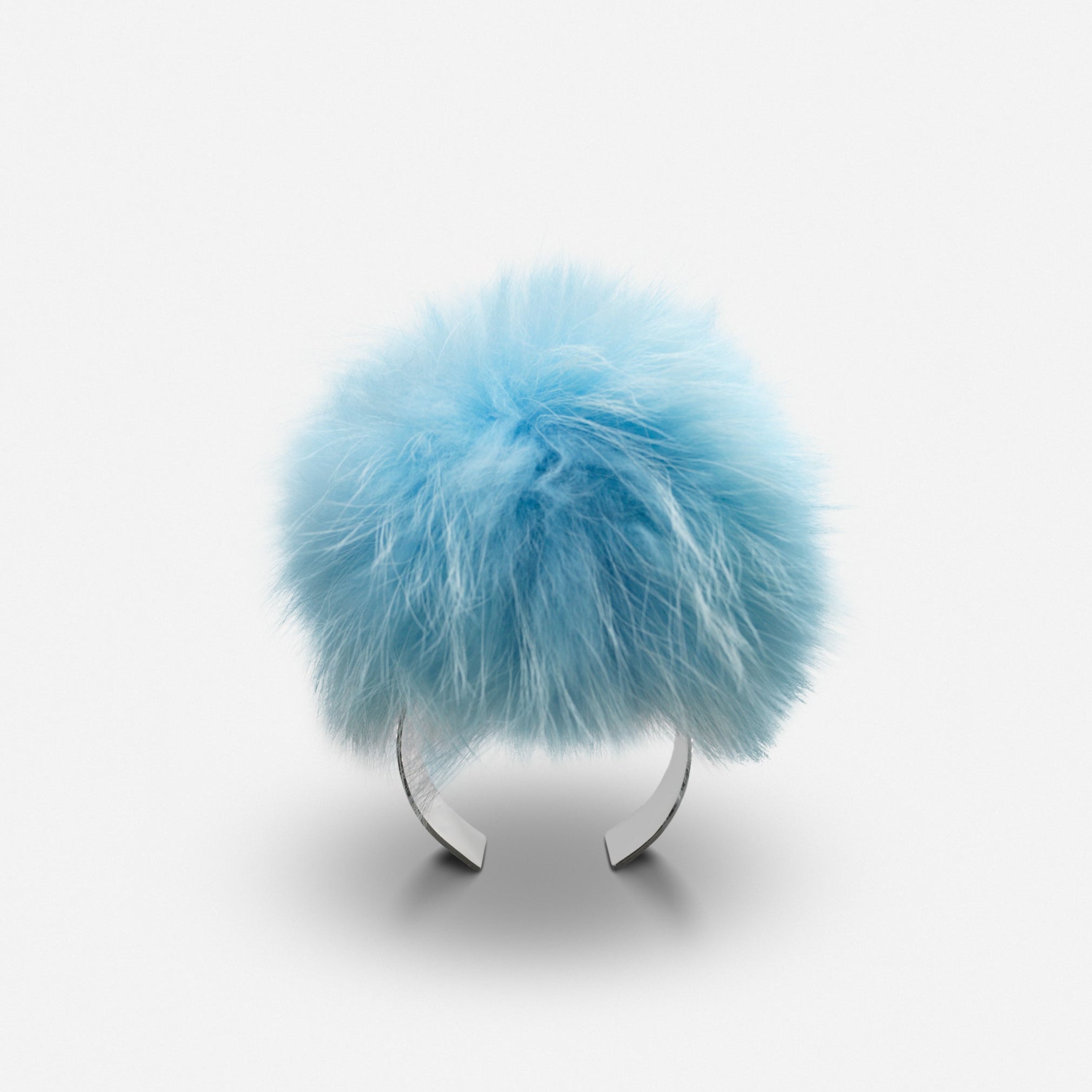 Silver cuff with fluffy baby blue fur pompom