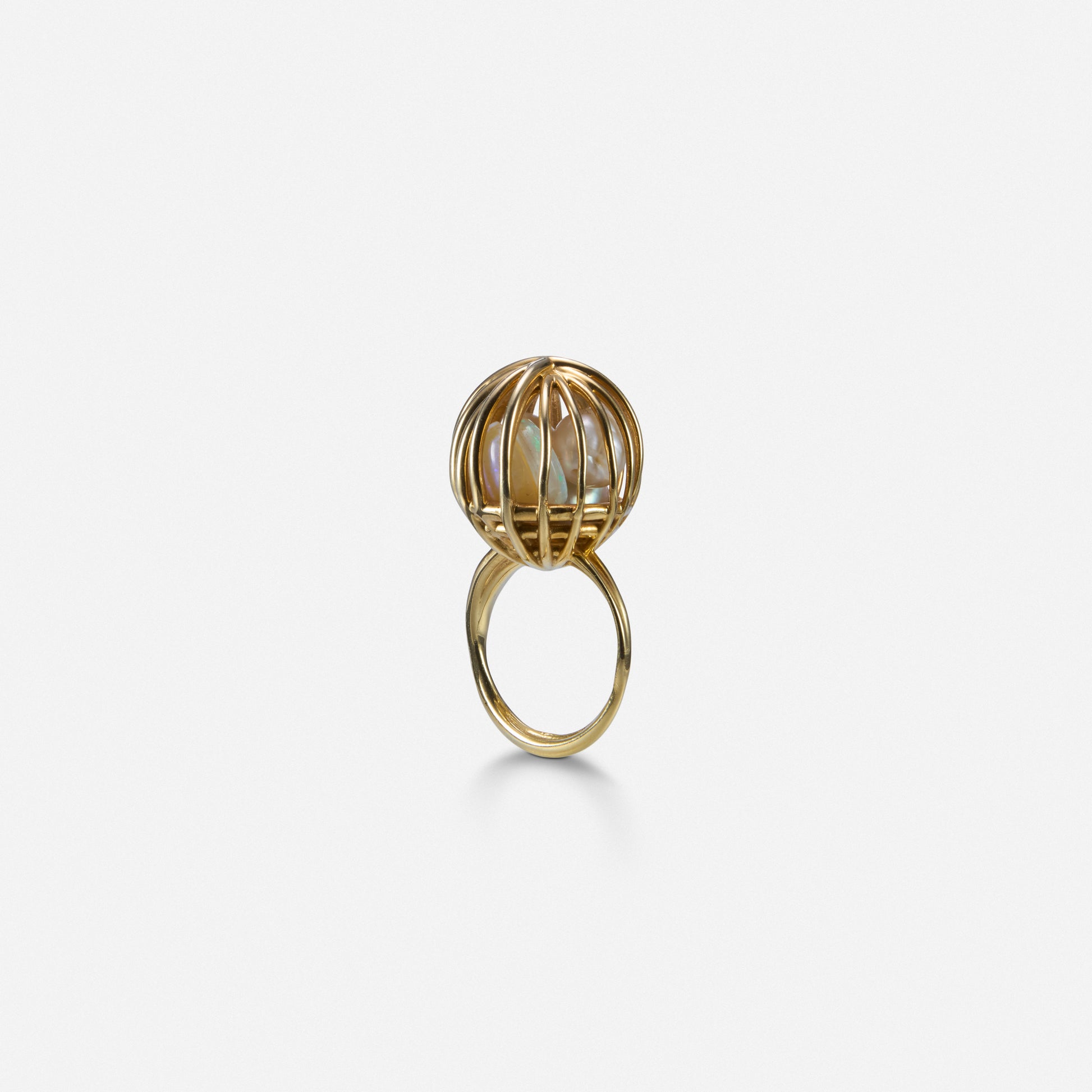 Gold Plated Rattled ring full of opals, pearls and moonstones